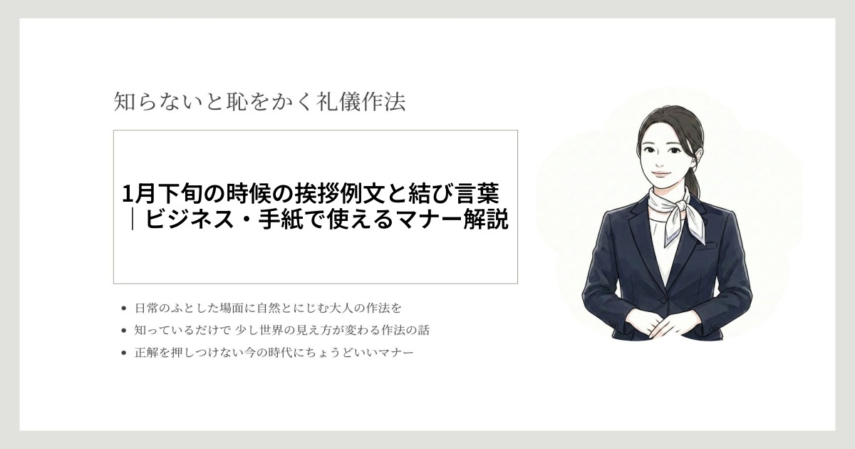 1月下旬は年の幕開けの余韻が残る中、寒さが一層厳しくなる時期です。この季節にふさわしい「時候の挨拶」は、ビジネス文書や手紙、メールで季節感や気遣いを伝える大切なマナーです。1月下旬は、相手とのコミュニケーションをより円滑にし、印象をワンラ... -