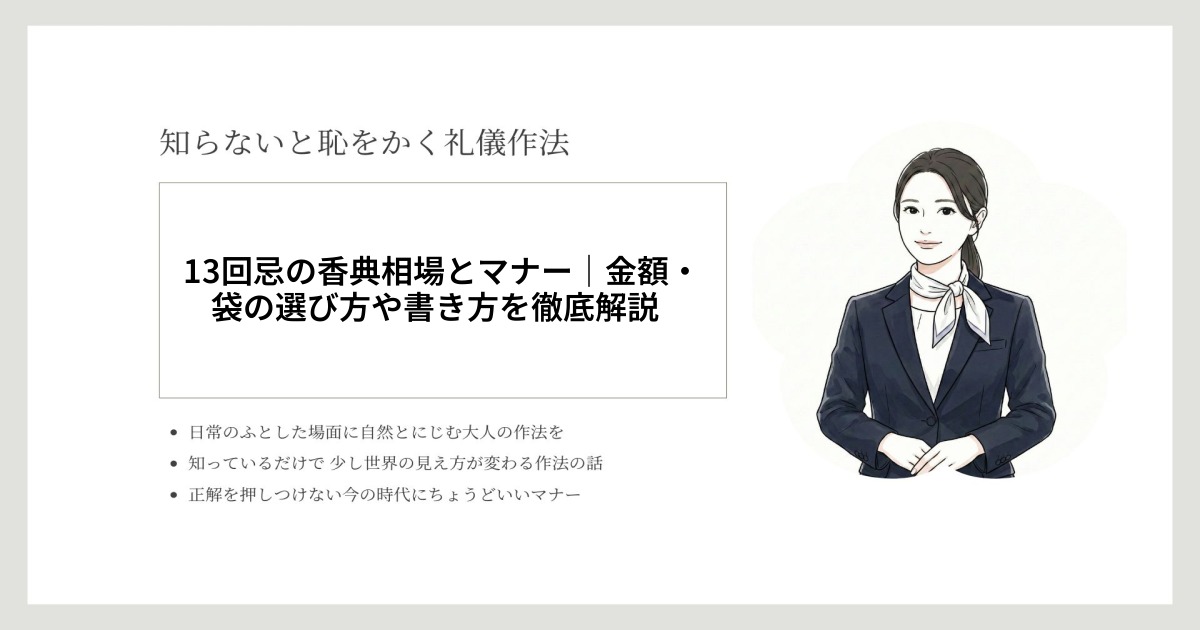 13回忌の香典は、金額の相場やマナー、香典袋の選び方・書き方、渡し方まで、細やかな配慮が求められます。