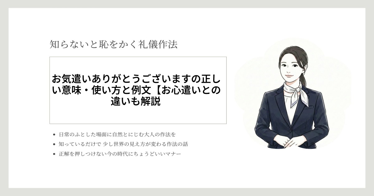 「お気遣いありがとうございます」は、日常でもビジネスでも、相手の親切や配慮に対して真摯な気持ちを伝える便利な言葉です。