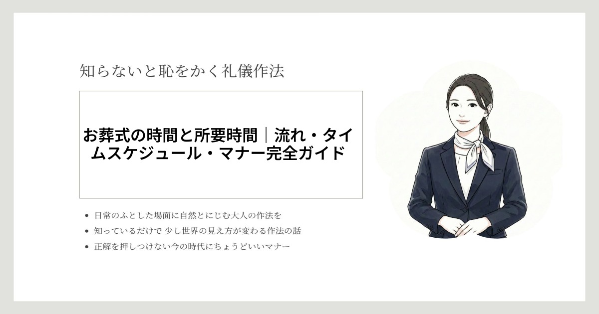 参列者は余裕を持った行動を、遺族・喪主は全体の流れと所要時間を把握して計画的に準備しましょう。