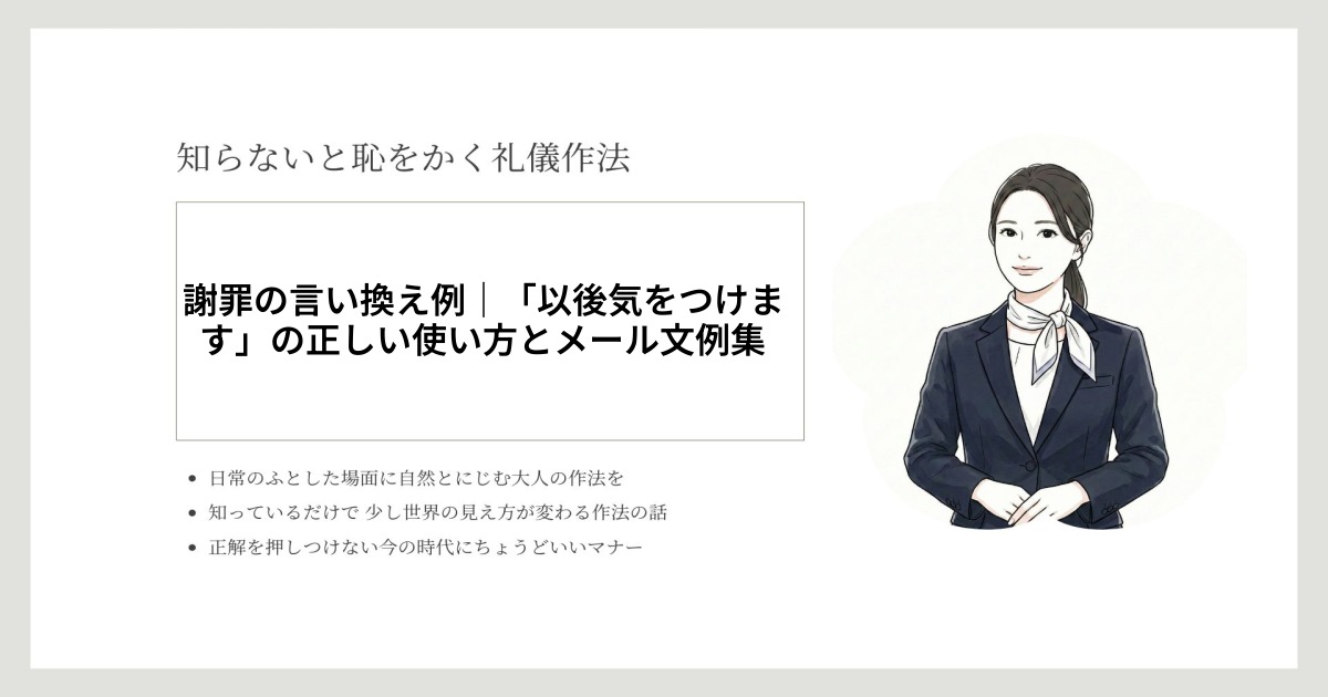 以前は社内やプライベートのやりとりで広く使われてきた「以後気をつけます」ですが、近年ではビジネスの現場で「謝罪 言い換え」がより重要視されています。