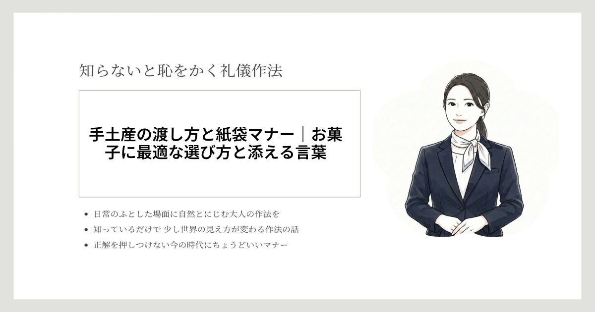 どんなシーンでも、手土産 渡し方 紙袋の基本を忘れずに、清潔感と丁寧さを意識することが大切です。