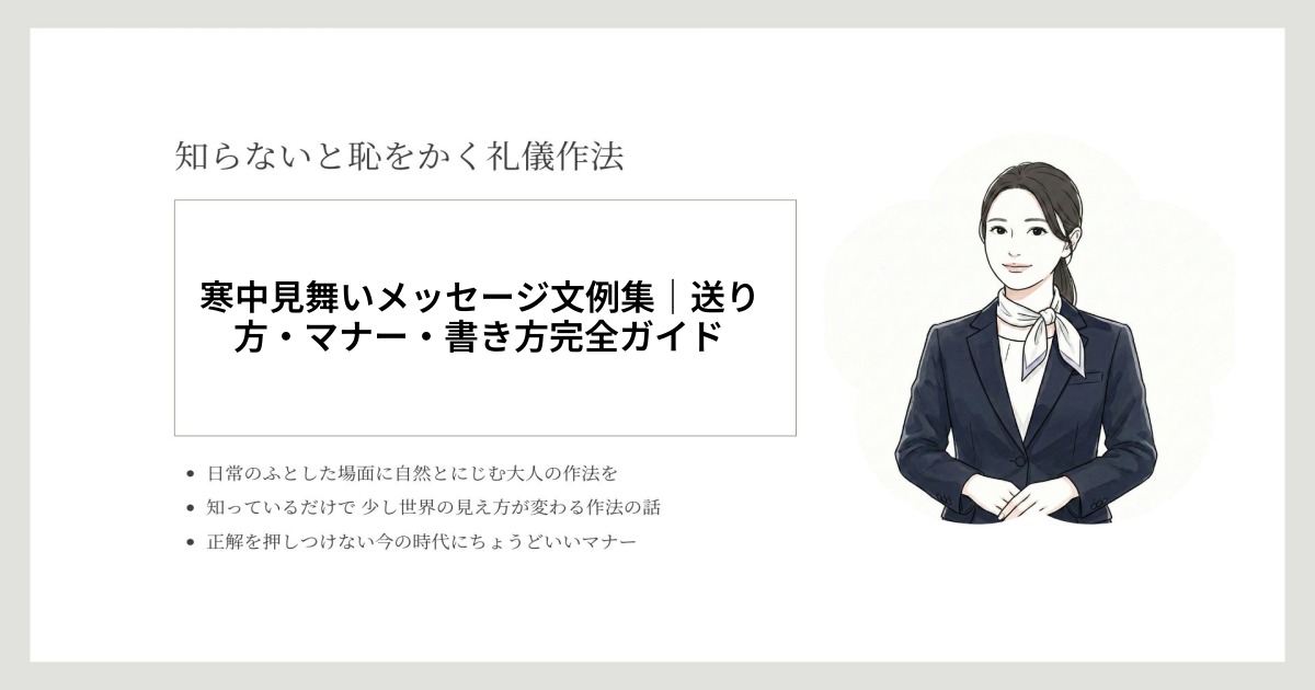 寒中見舞いメッセージは、相手を気遣う日本独自の美しい習慣です。このコラムでは、季節のご挨拶からビジネス、弔電、冠婚葬祭まで、幅広いマナーや文例をカテゴリー別にご紹介します。