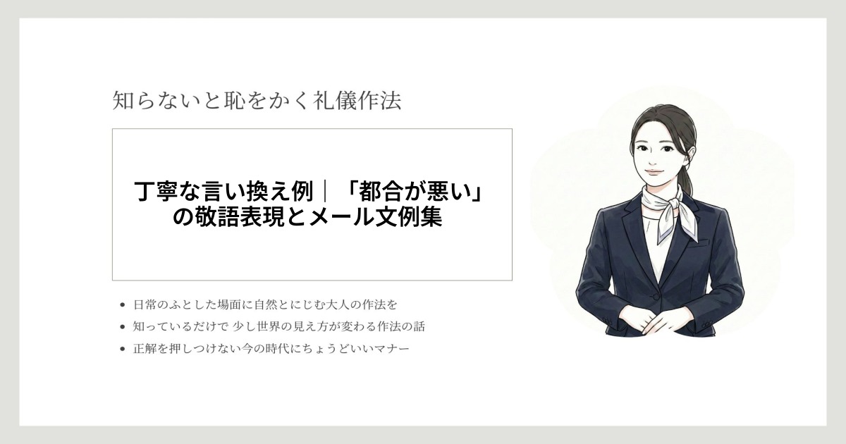 未分類丁寧な言い換え例|「都合が悪い」の敬語表現とメール文例集