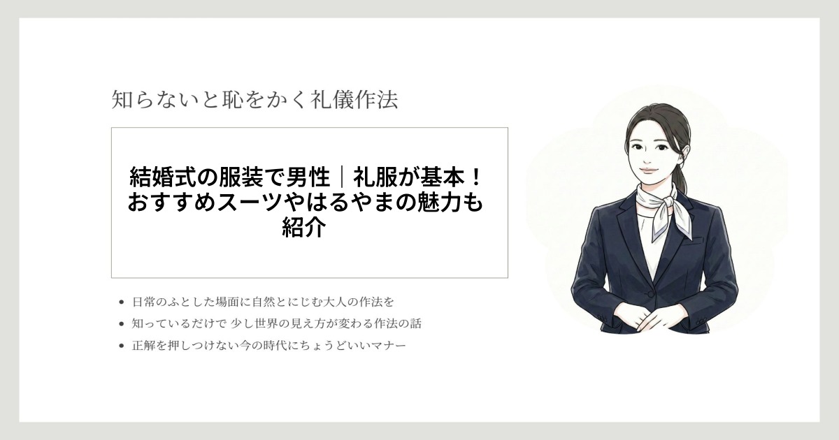 未分類結婚式の服装で男性|礼服が基本!おすすめスーツやはるやまの魅力も紹介